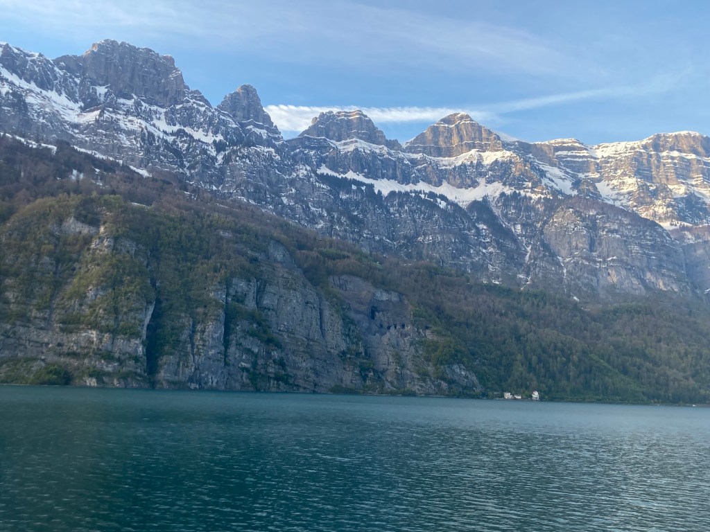 One hour and eight minutes after the departure from Zurich, the train reaches Buchs SG, the border station with Austria. From there, simply change to a mostly direct regional train to Unterterzen, which is reached in half an hour. From here you can hike around the lake for several hours or take the scheduled boat. I recommend a stop in car-free Quinten with its marvellous vineyards right on the lakeshore. In addition to a visit at a restaurant with a glass of local wine in the first row of the lake, the crystal-clear water is perfect for a swim. Those who don’t have time to get off, don’t worry, because the Railjet also runs past the Walensee right by the water.